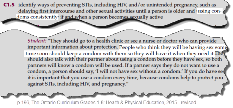 • The next teacher prompt once again risks sending the message to grade 8 kids that "we expect you may be having sex or will very soon".